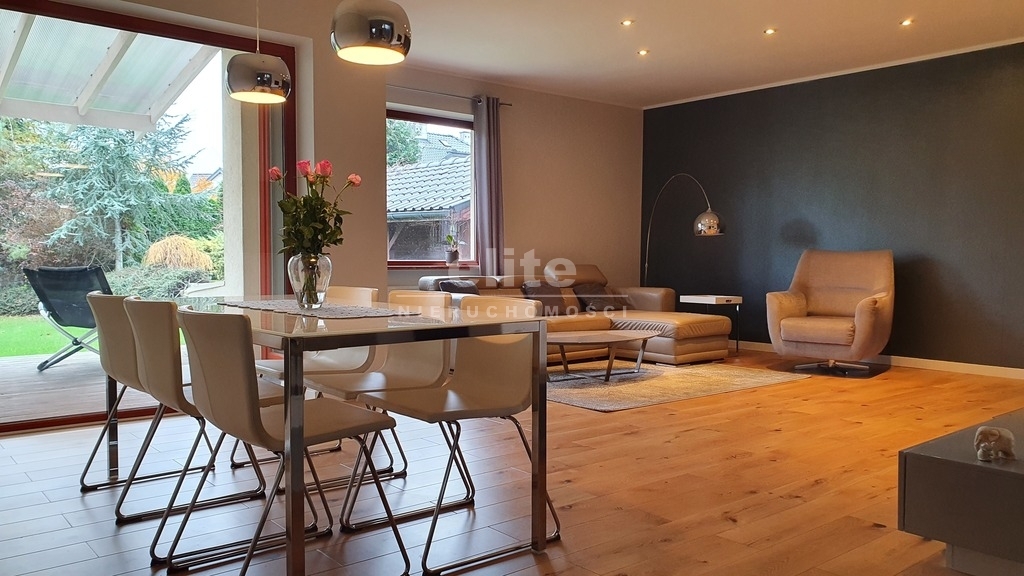 Dom posadowiony na działce o wielkości 1225 m2, w sąsiedztwie domy jednorodzinne. Zadbany ogród z licznymi nasadzeniami to doskonałe miejsce na odpoczynek czy plac zabaw dla dzieci.