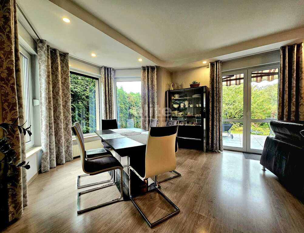 Nieruchomość doinwestowana i odświeżona. Ogrzewanie domu - gazowe (nowoczesnym piecem dwufunkcyjnym - wymienionym w 2022 roku) oraz kominkowe. Bardzo funkcjonalny układ pomieszczeń, uzyskany po zmodyfikowaniu pierwotnego projektu. Dom wykańczany materiałami wyłącznie wysokiej jakości. Po generalnym remoncie w 2022 roku, wymieniono wówczas m.in. podłogi, drzwi, umeblowanie, sprzęty, piec gazowy i wiele innych. Odmalowano również elewację oraz wykonano nowa podbitkę. Drzwi drewniane, antywłamaniowe, okna PCV również z roletami antywłamaniowymi oraz zainstalowanymi moskitierami. Dodatkowym atutem - aktywny system alarmowy z monitoringiem. Dom ekonomiczny w utrzymaniu, na dachu zainstalowana instalacja fotowoltaiczna (10kW). Wszystkie media miejskie. Poddasze do indywidualnego zaaranżowania. Duży garaż (24 m²) w bryle budynku (z bramą otwieraną na pilota) z dodatkową wiatą na kolejny pojazd oraz zainstalowaną stacją ładowania samochodów elektrycznych (EV). Spory taras (40 m²) z pięknie zaaranżowanym ogrodem, z wieloma nasadzeniami i domkiem narzędziowym (z zaaranżowanym miejscem na grilla oraz strefą do relaksu dla dzieci oraz dorosłych). Nieruchomość odseparowana metalowym ogrodzeniem, również z bramą otwieraną na pilota.
