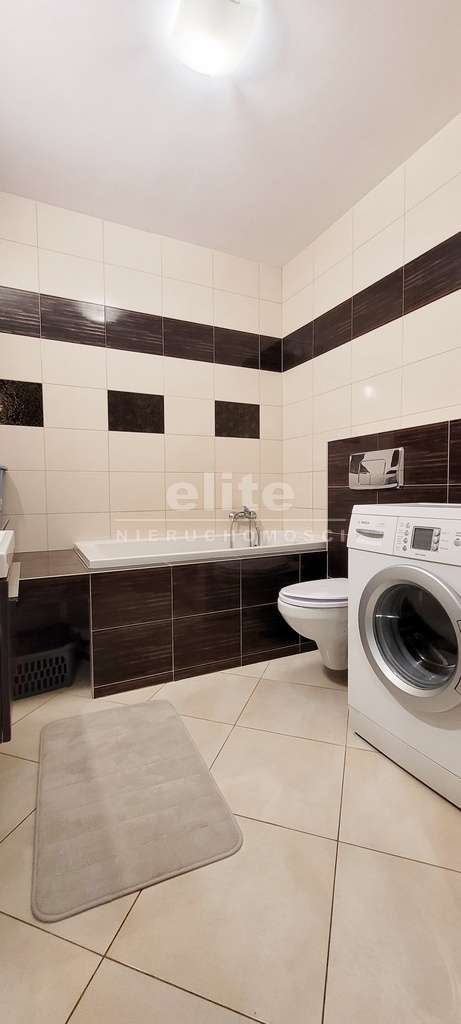 - łazienkę o pow. ok. 4,5 m2 wyłożoną glazurą i terakotą. W łazience znajdziemy również oprócz wanny, umywalki i wc także pralkę.