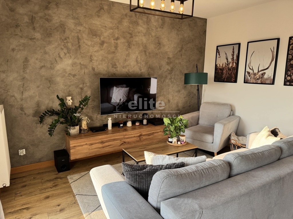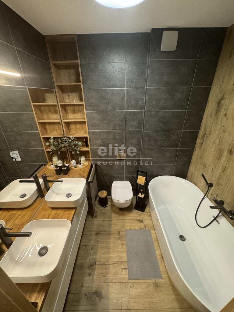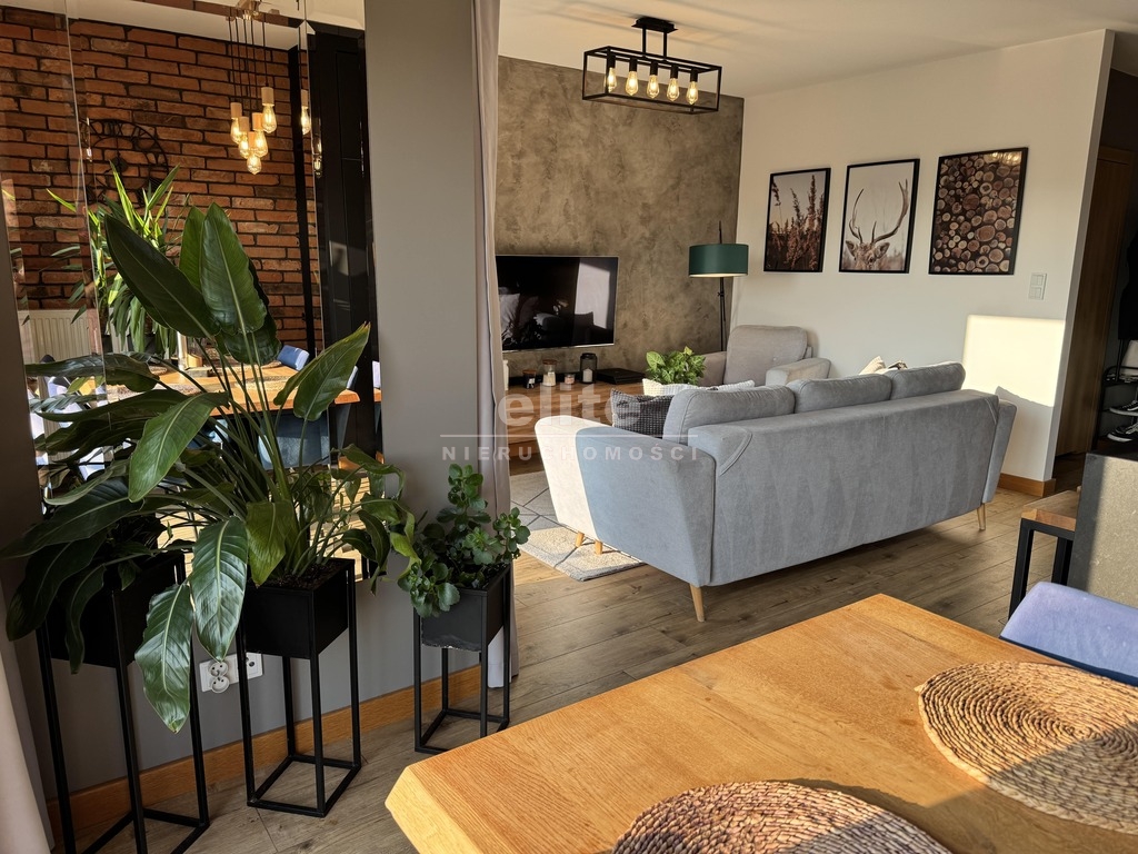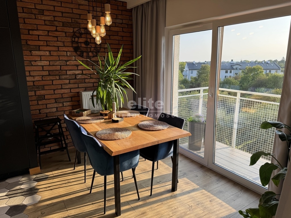 Mieszkanie jest w pełni umeblowane, sprzęt agd w zabudowie (zmywarka, lodówka, pralkosuszarka, indukcja, piekarnik, mikrofalówka), wysoki standard wykończenia: stół z litego drewna, blaty kuchenne granitowe, na ścianach licówki z prawdziwej cegły z rozbiórek.