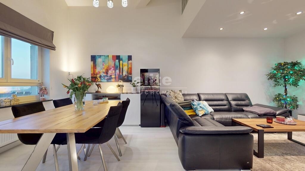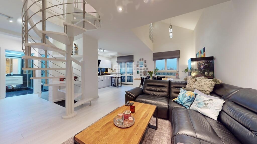 Nietuzinkowa oferta, dwupoziomowego mieszkania z otwartą przestrzenią i pięknym widokiem na cały Szczecin. Z górnego piętra widać w oddali jezioro Dąbie.
