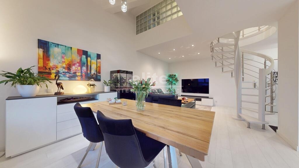 Dobrze zaaranżowana antresola i z gustem wkomponowane doświetlenia otworzyły i rozjaśniły przestrzeń a mieszkanie zyskało swój niepowtarzalny charakter.